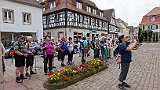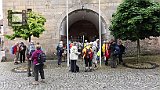Die Pilger vor der Stiftskirche in Klingenmünster |